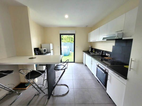 Cette belle maison récente, d'environ 128m2 habitables (et 147m2 utiles). Avec un garage isolé, et un carport.