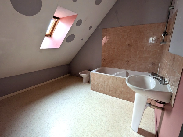 Elle se compose de 4 chambres, un salon-séjour, une cuisine, une salle de bain, une salle d'eau, deux WC séparés, un garage avec un grenier.