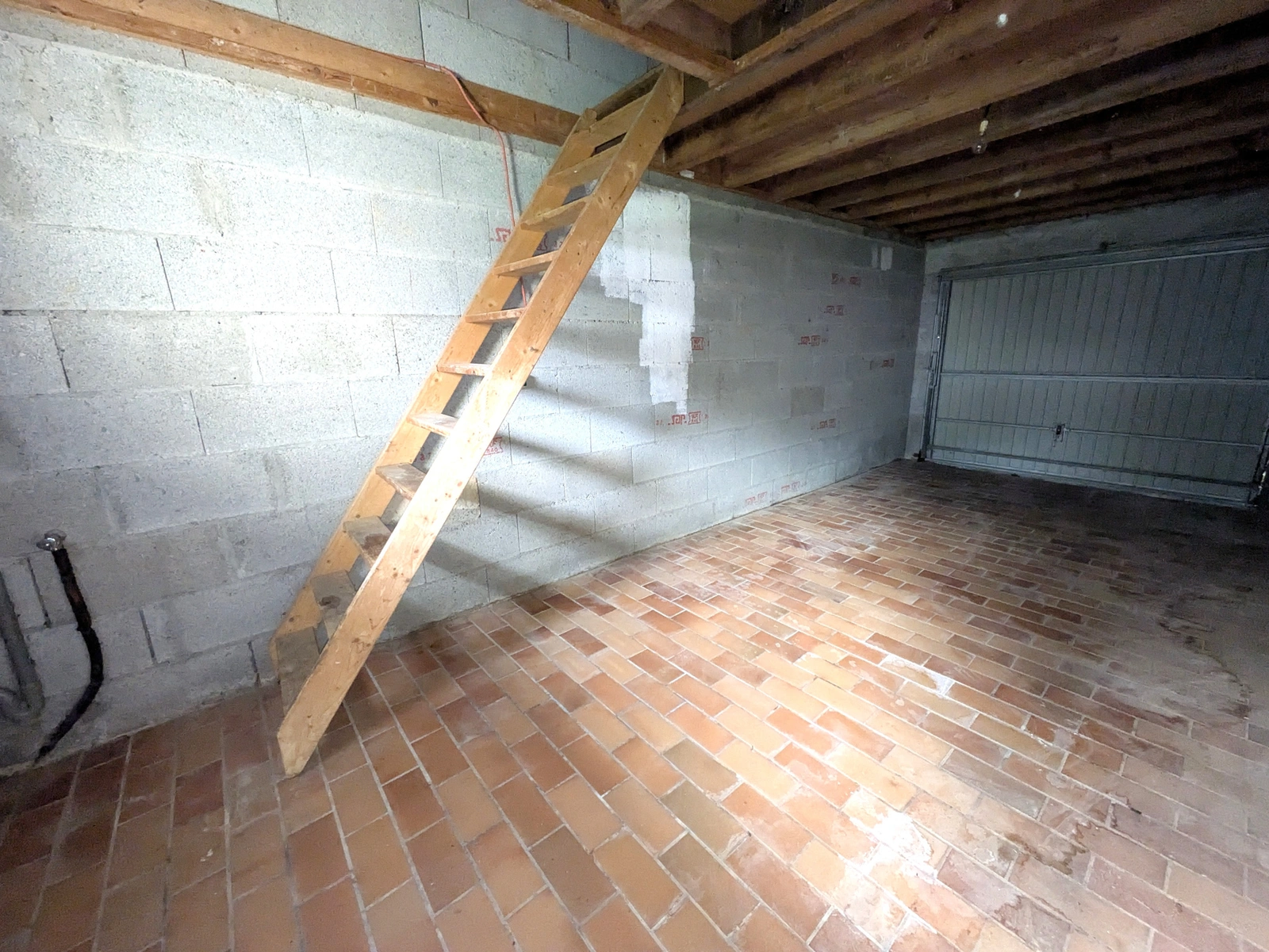 Au RDC: Un salon-séjour avec sa cheminée, donnant sur un jardin clos. Une grande cuisine. Une chambre avec sa salle d'eau. Un WC séparé avec lave main. Un garage de plus de 17m2, qui a un accès sur le jardin, et un grenier de plus de 15m2.