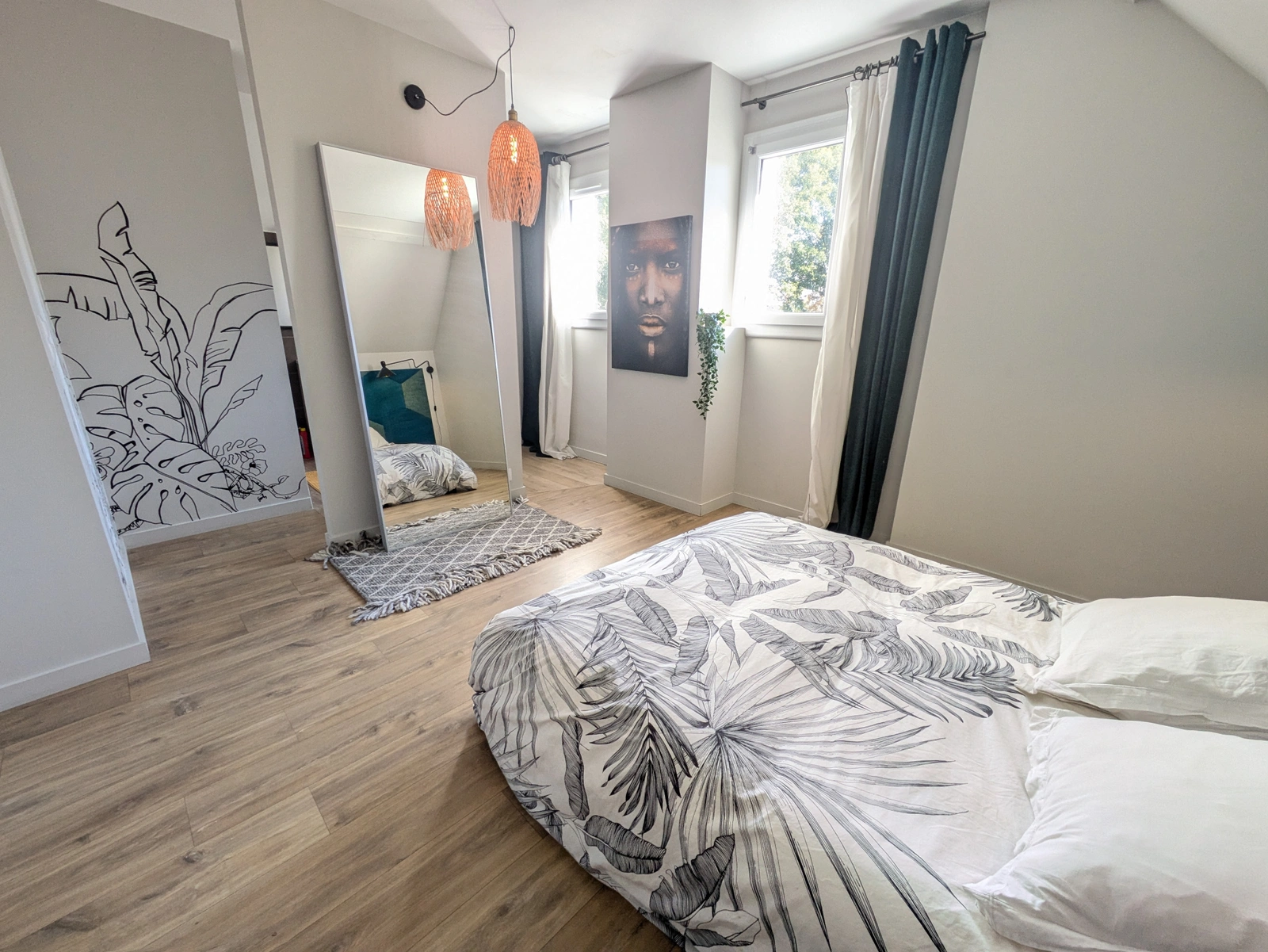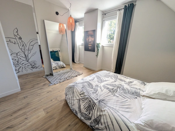 Une mezzanine desservant 3 chambres dont une suite parentale avec sa propre salle d'eau.